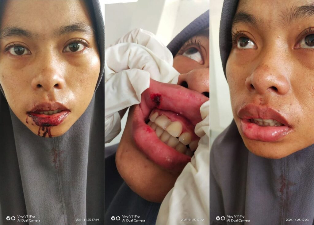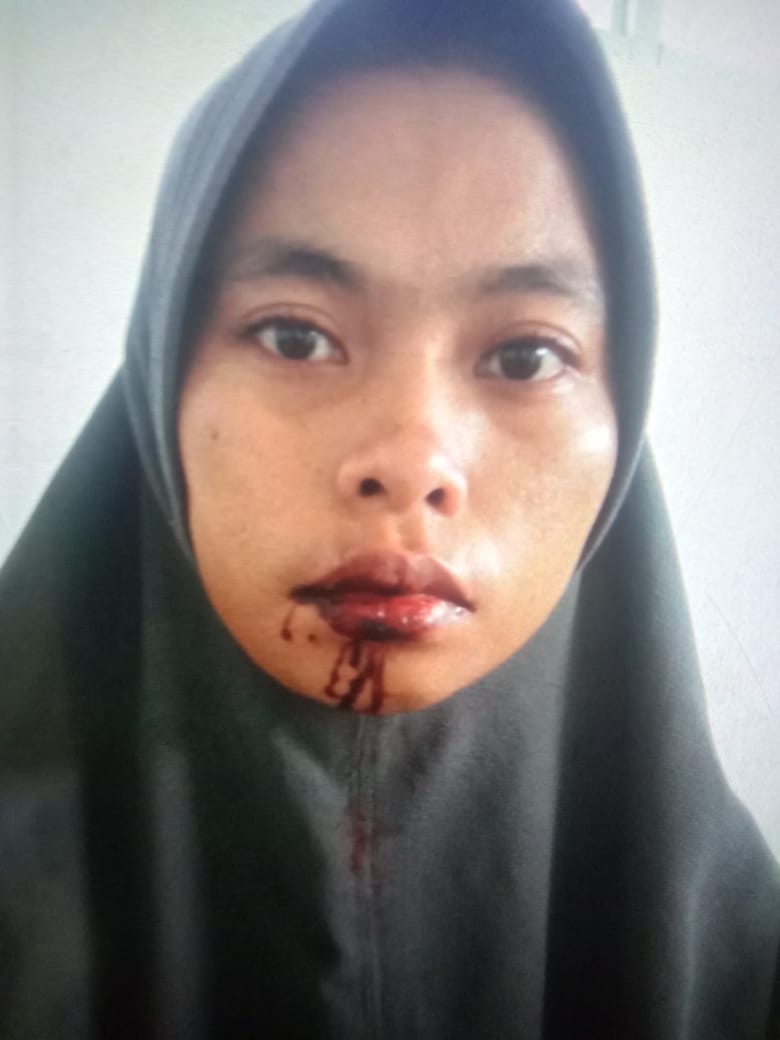 Dirinya menambahkan, “saya dikeroyok dan dianiaya didepan umum yang menyebabkan saya mengalami luka robek sehinga mulut saya berumuran darah di bagian bibir, belum lagi trauma dan beban mental yang saya rasakan”, kata Rina. (Red)