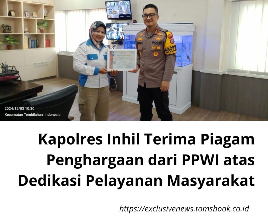Tom’S Book, Tembilahan, Kapolres Indragiri Hilir (Inhil), AKBP Budi Setiawan, menerima penghargaan berupa piagam dari Persatuan Pewarta Warga Indonesia (PPWI).